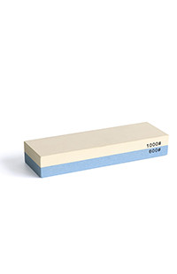 | Halten Sie das Messer in einem Winkel von 10 - 30 °, schleifen Sie die Schneide mit leichtem Druck auf der Oberfläche des Steins hin und her und schärfen Sie es, bis die Schneide scharf genug ist. |